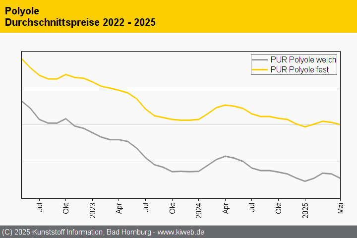 Polyole litten unter den Abschlägen bei den Vorprodukten, die insbesondere Produkte für Weichschäume trafen. Inzwischen scheint ein Tiefpunkt zumindest für die Standardqualitäten erreicht zu sein. Europäische Erzeuger sowohl von flexiblen als auch von festen Polyolen können und wollen die von den Importen diktierten Preise auf Dauer nicht mitgehen und würden ihre Anlagen eher noch stärker drosseln oder gar stilllegen. Dies berichtet der Branchendienst Kunststoff Information (KI, Bad Homburg) im aktuellen Online-Report.