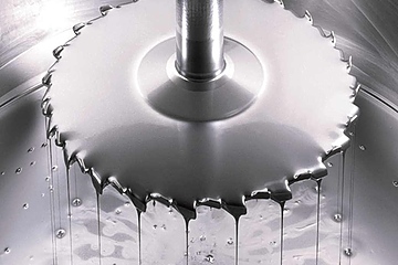 Silbern glänzt es aus dem Mischer bei Eckart (Foto: Altana)