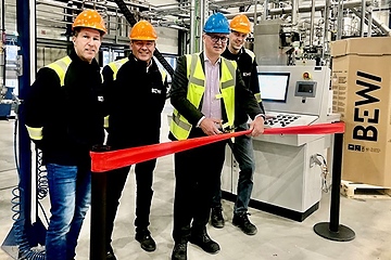 Offizielle Einweihung der neuen Linie in Etrten-Leur: „Raw“-Chef Alan Moss (2.v.l.) mit seinem F&E-Leiter Jürgen de Jong (li), Stadtrat Ger De Weert und dem Manager für Prozessentwicklung Theo van Maurik (Foto: Bewi)