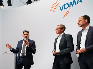 Viel Grund zum Strahlen haben die Vertreter des europäischen Maschinenbaus Luciano Anceschi, Michael Baumeister und Thorsten Kühmann (von links) derzeit nicht (Foto: KI/Hauptmannl)