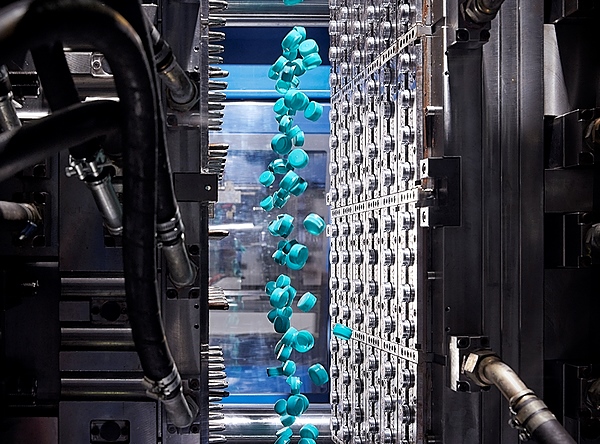 Unter Druck: Kappenproduktion im Spritzgießverfahren (Foto: Alpla)