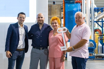 Schlüsselübergabe: Dr. Heimo Pascher (li.) mit dem Monosi-Geschäftsführer Ilias Strousidis und den bisherigen Eigentümern Maria Katsaounidou und Nikos Strousidis (Foto: Austrotherm/Porikis Efstathios)Schlüsselübergabe: Dr. Heimo Pascher (li.) mit dem Monosi-Geschäftsführer Ilias Strousidis und den bisherigen Eigentümern Maria Katsaounidou und Nikos Strousidis (Foto: Austrotherm/Porikis Efstathios)
