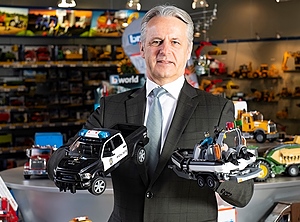 Die neuesten Produkte aus seinem Hause fest im Griff: Paul Heinz Bruder (Foto: Bruder Spielwaren)
