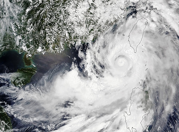 Taifun "Doksuri" zwischen den Philippinen und der Südspitze von Taiwan, bevor er in China auf Land traf (Foto: Nasa Earth Observatory)