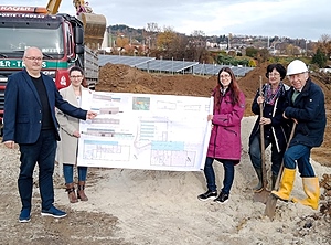 Unternehmerfamilie beim ELT-Spatenstich im österreichischen Friedberg: Esther Lang (2.v.l.), Dagmar Ajtic (3.v.r.) sowie Sabine und Firmengründer Dr. Friedrich Zitz (rechts, Foto: ELT)