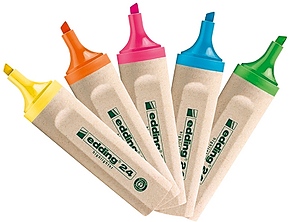 Nachhaltige Highlighter -- mit Hülsen aus nachwachsenden Rohstoffen (Foto: Edding)