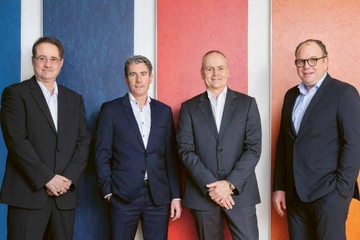 Die Chefs des Unternehmens aus Baar: CEO Jens Fankhänel (2.v.r.), CFO Andreas Jaeger (2.v.l.), Executive Vice President Flooring Systems Jean-Michel Wins (li.) und Executive Vice President Movement Systems Marc Deimling (Foto: Forbo)
