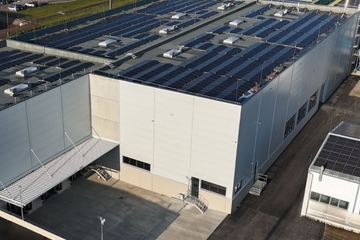 Blick aus der Vogelperspektive auf die neue Halle: Erweiterung der Regalflächen am Stammsitz in Niederösterreich (Foto: Gabriel-Chemie)