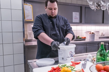 Den Eimer immer im Blick: Aufbau eines Verwertungskreislaufs für Verpackungsabfälle, die bei gewerblichen Endverbrauchern anfallen (Foto: Jokey)