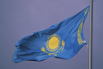 Die Fahne Kasachstans: Auf einem himmelsblauen Tuch eine goldene Sonne über einem Steppenadler (Foto: Pexels/Big Element)