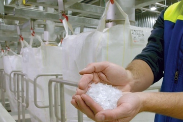 Mehr als nur Krümel in der hohlen Hand: Krones liefert bis 2026 mehrere PET-Recyclinganlagen an Republic Services in den USA (Foto: Krones)