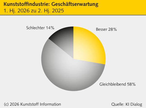 Für 29 Prozent ist es gleich (schlecht) geblieben, und nur für knapp jedes fünfte Unternehmen (19 Prozent) lief es in der zweiten Hälfte 2025 besser als in der ersten. Das ist das ernüchternde Ergebnis der halbjährlich durchgeführten Konjunkturumfrage von Kunststoff Information (KI), die zwischen Mitte Dezember 2025 und Mitte Januar 2026 erhoben wurde.