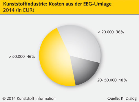 Das Thema der steigenden Stromkosten als Folge des Erneuerbare-Energien-Gesetzes (EEG) beschäftigt die Kunststoffbranche weiterhin. Fast die Hälfte der befragten Unternehmen muss allein in diesem Jahr zusätzliche Kosten von jeweils mehr als 50.000 EUR tragen. Besonders betroffen sind die energieintensive Erzeugung (rund 70 Prozent) sowie die produzierenden Zweigen Verarbeitung, Recycling und Anwendung. Die Ausgleichsregelung hilft der Branche insgesamt wenig. Rund die Hälfte der Unternehmen hat keinerlei Aussicht auf die Abfederung der Belastung, lediglich die energieintensiven Betriebe der Erzeugung sind von der Regelung betroffen. Die Kleinstbetriebe unter 20 Mitarbeitern haben nur sehr geringe Chancen auf einen Ausgleich.