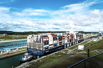 Ein Bild aus besseren Tagen: Containerschiff im Panama-Kanal (Foto: Pexels, Victor Puente)