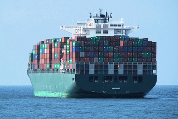 Randvoll, aber die Wasserlinie noch nicht erreicht: Das Containerschiff „Hamburg“ nimmt Kurs auf den Welthandel (Foto: PantherMedia, Bootlegger)