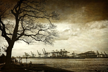 Schaurig schön: Über dem Hamburger Hafen ballen sich dunkle Wolken (Foto: Pexels, Mali Mäder)