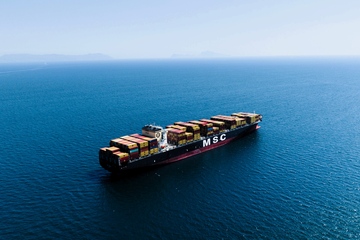 Nicht mehr lang allein auf hoher See: Containerfrachter im Mittelmeer (Foto: Pexels, Kelly)