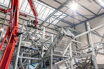 Hoch hinaus: Aufbau der neuen PET-Sortieranlage in Frauenfeld / Schweiz (Foto: Müller)