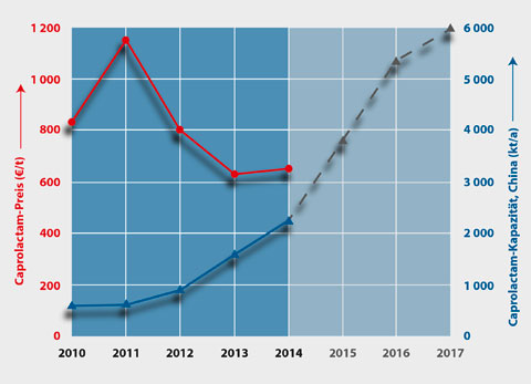 | Gesunkene Margen bei Polyamid-Intermediates und vervielfachte, weiter wachsende Produktionskapazitäten in China gehören zu den Faktoren, die grundlegende Neuorientierungen bei den europäischen Herstellern erfordern. Grafik: PCI Nylon |