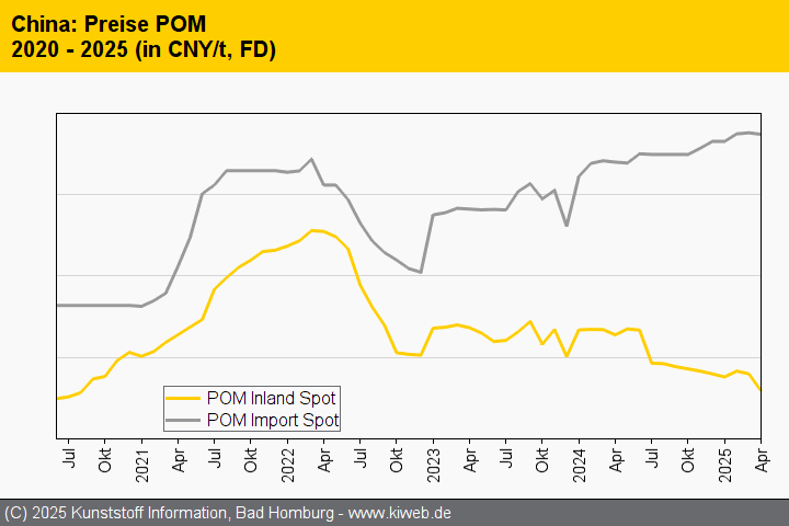 Die Regierung in Peking hat die seit Januar 2025 geltenden vorläufigen Anti-Dumping-Zölle auf POM-Importe mit Wirkung vom 19. Mai 2025 nun endgültig verhängt.