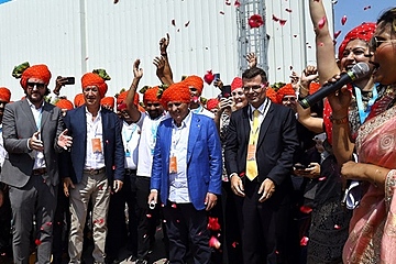 Turbanpflicht: Bei der traditionell-indischen Einweihung der Produktionsstätte ging daran kaum ein Weg vorbei (Foto: Radici)