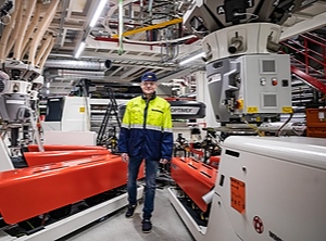 Inmitten der sternförmig angeordneten Extruder: Vertriebschef Dennis Granqvist (Foto: Rani Plast)