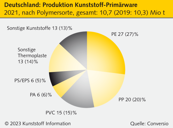 Die Studie „Stoffstrombild Kunststoffe in Deutschland 2021“ wurde wie üblich im Auftrag des BKV (Frankfurt am Main) und mit Unterstützung zahlreicher Verbände wie Plastics Europe Deutschland, dem GKV, TecPart oder auch dem bvse erstellt. Alle zwei Jahre liefert sie Lebenswegdaten zum Werkstoff Kunststoff.