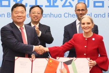 PIC-CEO Nadia Al Hajji und Kou Guangwu, President von Wanhua Chemical (Yantai, Shandong / China), unterzeichneten entsprechende Verträge während eines Treffens in Yantai in der chinesischen Provinz Shandong. Nach KPC-Angaben ist es die umfangreichste Petrochemie-Investition in China.