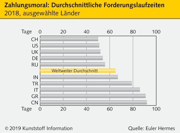 Die durchschnittliche Forderungslaufzeit von Rechnungen ist im vergangenen Jahr global um einen Tag auf 65 Tage gesunken. Dies berichtet der Kreditversicherer Euler Hermes (Courbevoie / Frankreich) in einem aktuellen Report. Am längsten -- nämlich im Schnitt 92 Tage -- mussten Unternehmen in China auf die Begleichung von Außenstände warten.