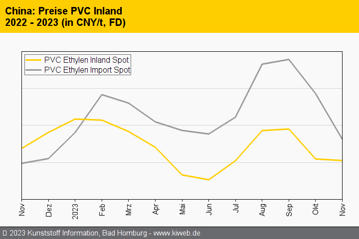 Die Preise für alle Standardkunststoffe sanken auf dem chinesischen Markt hauptsächlich aufgrund der geringen Nachfrage aus den Endabnehmerbranchen sowie des guten Polymer-Angebots in der traditionellen Nebensaison. Die schwächere Nachfrage sorgte auch bei den Verarbeitern für eine Drosselung der Produktion, sie kauften in der Folge weniger Granulat. Der Rückgang der Rohölpreise drückte die Polymerpreise insgesamt nach unten.