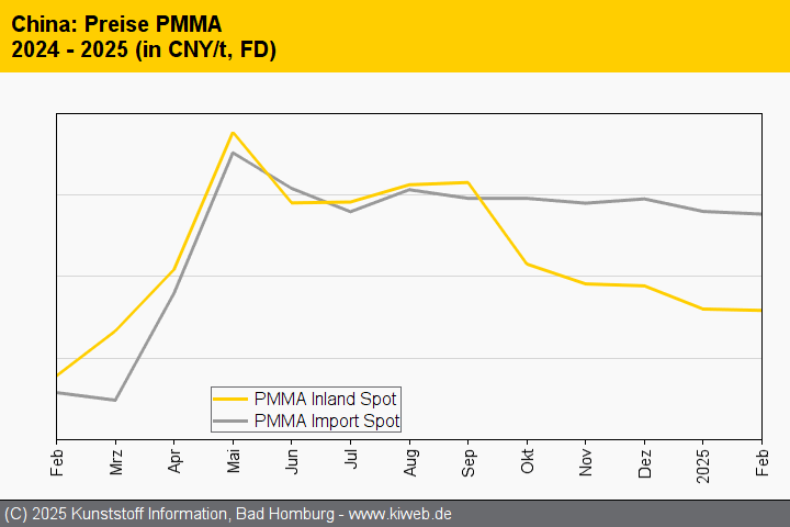 Anders als erwartet gaben die monatlichen Durchschnittspreise für die Mehrzahl der technischen Thermoplaste im Februar nach, da sich die Nachfrage mit dem Ende des Frühlingsfestes nicht so schnell erholte wie zunächst prognostiziert.