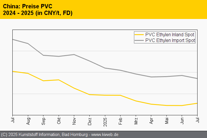 Einige positive Marktimpulse ergaben sich im Monatsverlauf durch eine Reihe wirtschaftlicher Anreize Pekings. Anfang Juli bekräftigte die Zentralregierung, dem Problem des Preisdumpings unter Unternehmen entgegentreten zu wollen und so die „gesunde Entwicklung verschiedener Industriezweige zu fördern“. Bereits im April waren die „Vorschriften zur Überprüfung fairen Wettbewerbs“ in Kraft getreten; im Juni folgte dann die Überarbeitung des Gesetzes gegen unlauteren Wettbewerb. Viele Marktteilnehmer erhoffen sich von diesen Schritten positive Effekte. Dies berichtet der Branchendienst Kunststoff Information (KI, Bad Homburg) im aktuellen Online-Report.