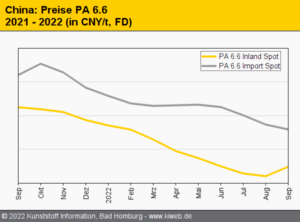 Die traditionelle Hochsaison in mehreren Abnahmebranchen trieb die chinesischen Preise für einige technische Thermoplaste wie ABS, Polycarbonat, Polyamid 6.6 und PBT im September nach oben. Die Nachfrage im Automobilsektor war offensichtlich stärker als im Vormonat, während die Ordertätigkeit aus den Branchen Textil, Verpackung und Elektronik zwar zulegen konnten, im Vergleich zum Vorjahr jedoch immer noch eine schwächere Nachfrage verzeichneten. Dies berichtet der Branchendienst Kunststoff Information (KI, Bad Homburg) im aktuellen Online-Report.