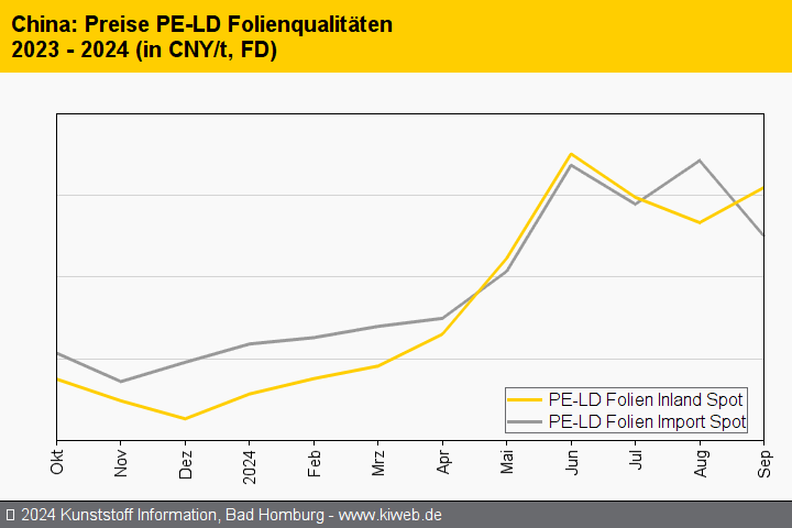 Die Hoffnung richtet sich nun auf das Konjunkturpaket der Regierung in Peking. Diese kündigte Ende September eine Reihe von Maßnahmen an, um das Wirtschaftswachstum anzukurbeln. Zu diesen gehören die Senkung des Mindestreservesatzes für Banken, niedrigere Kreditzinsen, geringere Kosten für Hypothekendarlehen bei Bestandsimmobilien und Maßnahmen zur Unterstützung des Aktienmarktes. An den chinesischen Kapitalmärkten löste das Paket eine regelrechte Euphorie aus. Dies berichtet der Branchendienst Kunststoff Information (KI, Bad Homburg) im aktuellen Online-Report.