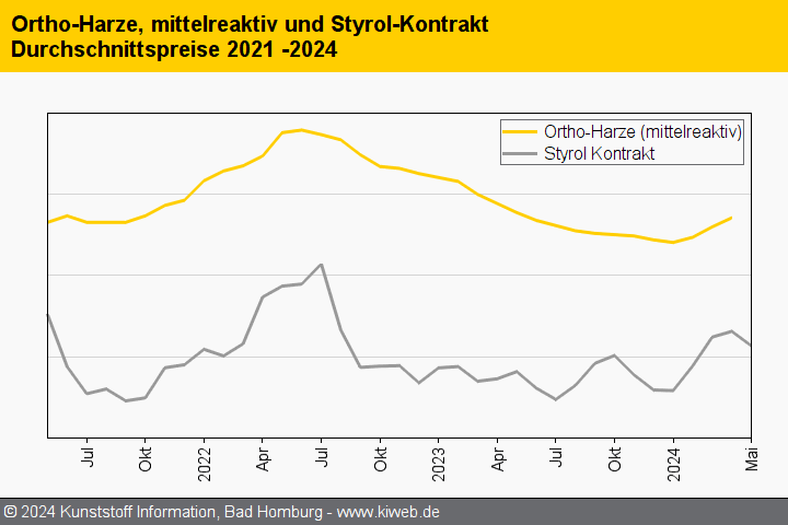 Die Harznotierungen zogen im April erneut spürbar an. Eine leicht belebte Nachfrage erlaubte es den Produzenten, die gestiegenen Vorproduktkosten zumindest in Teilen einzupreisen.