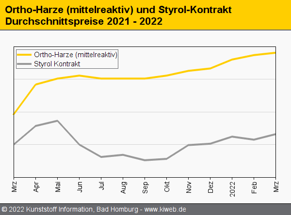 Der markante Aufschlag beim Styrol-Kontrakt von 360 EUR/t Anfang April wird auch den Harzpreis in die Höhe katapultieren. Zu erwarten sind bei kleineren und mittelgroßen Abnahmen mindestens dreistellige Aufschläge. Dies berichtet der Branchendienst Kunststoff Information (KI, Bad Homburg) im aktuellen Online-Report.