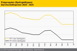 In einer vermutlich letzten Zuckung trieb der niedriger fixierte Styrol-Kontrakt die Harze noch einmal etwas tiefer. Eine Verschnaufpause, möglicherweise sogar eine Bodenbildung, deutete sich nach Ansicht mancher KI-Panelteilnehmer jedoch bereits an. Tatsächlich festigende Impulse waren jedoch zumindest bis in die dritte Juliwoche noch nicht zu erkennen. Dies berichtet der Branchendienst Kunststoff Information (KI, Bad Homburg) im aktuellen Online-Report.