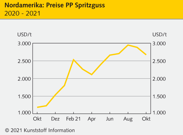 An den nordamerikanischen Polymermärkten zeigte sich im Oktober 2021 ein gemischtes Bild: Die Preise für die Polyolefine gaben deutlich nach, und PVC notierte im Rollover. Seitwärts bis fester präsentierten sich Polycarbonat, Polystyrol, ABS und die Polyamide. Die Standard-Thermoplaste profitierten von der Entspannung in der Produktion. Außerdem ist die Nachfrage vergleichsweise ruhig. Bei PVC dümpelten die Preise meist seitwärts, berichtet KI-Kooperationspartner RTi (Fort Worth, Texas / USA).