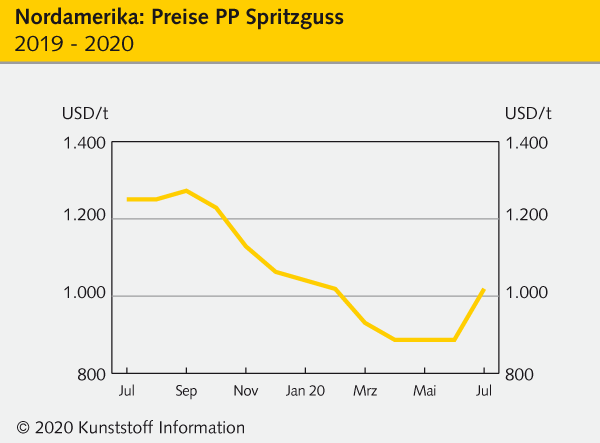 Während die Preise für Polyolefine, PVC und Polystyrol am nordamerikanischen Markt im Juli 2020 teils kräftige Aufschläge verzeichneten, dümpelten die Notierungen der technischen Thermoplaste weiter seitwärts oder verbuchten sogar Abschläge. Produzenten hatten den Output von Polyethylen, Polypropylen und PVC in den Vormonaten teils drastisch reduziert, um angesichts des Pandemie-bedingten Nachfrageeinbruchs das Überangebot abzubauen. Diese Strategie scheint sich nun auszuzahlen. Das berichtet KI-Kooperationspartner RTi (Fort Worth, Texas / USA).