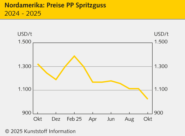 Im Oktober 2025 präsentierten sich die nordamerikanischen Polymermärkte klar angeschlagen. Schwache Nachfrage, hohe oder zumindest komfortable Lagerbestände und fallende Kosten für wichtige Vorprodukte wie Benzol, Styrol, Ethylen, Propylen und Butadien setzten nahezu alle großen Märkte unter Druck. Kurzfristige Produktionsprobleme, etwa bei Polyethylen und Polypropylen, reichten nicht, um das Überangebot spürbar zu verknappen. Dies berichtet der Branchendienst Kunststoff Information (KI, Bad Homburg) im aktuellen Online-Report.
