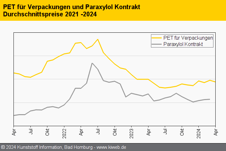 Nach den Turbulenzen in den beiden Vormonaten rüttelte sich der europäische PET-Markt im April 2024 wieder etwas zurecht. Bei stagnierenden Vorproduktkosten produzierten die europäischen Hersteller auf ansehnlichem Niveau. Importe trafen ein, jedoch hatten sie wegen steigender Logistikaufwendungen auf dem weiten Weg von Asien deutlich an preislicher Attraktivität eingebüßt. Bei weiter eher geringer Nachfrage boten die europäischen Hersteller zum Anreiz moderate Abschläge an. Mit Erfolg, denn die Verarbeiter griffen wegen der damit wettbewerbsfähigen Preise auf die qualitätssicheren Materialien zurück.