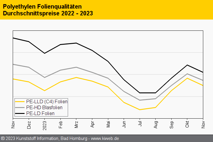 Die Reduktion des Monomerkontrakts um 45 EUR/t übte Druck auf die Polymerpreise aus. Dass sich die Versorgungslage wieder entspannte, führte dazu, dass die zuvor stärker gestiegenen Notierungen nun mehr als die Monomervorgabe zurückgingen. Zudem konnten zusätzliche Anpassungen erwirkt werden, für Bestellungen mit Lieferung im Dezember. Große Impulse aus den Abnehmerindustrien waren ohnehin nicht erwartet worden.