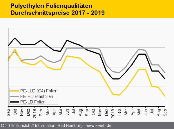 Die europäischen Polyethylen-Märkte wurden im September 2019 durch die Vorgabe der nachlassenden Ethylenreferenz geprägt. Natürlich wollten die Anbieter Teile der Kostensenkung einbehalten, was ihnen aber meist nur in Nischenanwendungen in geringem Umfang gelang. Die Nachfrage wurde mit Blick auf die Jahresendboni und die sich abzeichnende Bodenbildung nach dem Drohnenangriff in Saudi-Arabien angekurbelt und stieg damit auf Normalstand. Dies berichtet der Branchendienst Kunststoff Information (KI, Bad Homburg) im aktuellen Online-Report.