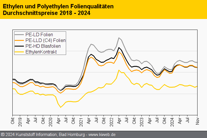 Für Dezember erwarten die Marktteilnehmer keine grundlegenden Änderungen. Die Vergünstigung des Ethylenkontrakts dürfte die Weichen für erneute Preisanpassungen nach unten stellen. Zudem werden sich einige Anbieter im Rahmen der Jahresgespräche noch besser positionieren wollen. Daher sind weitere Zugeständnisse zu erwarten. Dies berichtet der Branchendienst Kunststoff Information (KI, Bad Homburg) im aktuellen Online-Report.
