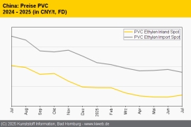 Der September zeigt üblicherweise ein Anziehen der Bedarfe. Anbieter werden versucht sein, weitere Margenverbesserungen zu erzielen. Verarbeiter werden mit allen Mitteln versuchen, das zu verhindern. Denn auch sie haben mit erodierenden Margen zu kämpfen. Die Reduktion bei C2 (-25 EUR/t) dürfte Druck auf die Preise ausüben. Ein leichtes Anziehen der Nachfrage nach der Ferienzeit lässt sich auf Bestandsaufbau einiger Verarbeiter zurückführen. Dies berichtet der Branchendienst Kunststoff Information (KI, Bad Homburg) im aktuellen Online-Report.