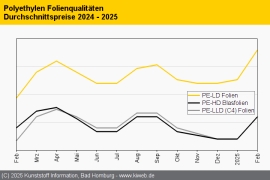 Auch ohne Fixierung des C2-Kontrakts kursieren für Februar 2024 bereits dreistellige Aufschlagsforderungen im Markt. Dies wird intensivere Verhandlungen provozieren, da Impulse bei der Nachfrage auf sich warten lassen und Verarbeiter sich den Aufschlägen widersetzen dürften. Ernsthafte Versorgungsengpässe werden nicht erwartet. Bei einzelnen Typen könnten sich Lieferzeiten etwas verlängern. Dies berichtet der Branchendienst Kunststoff Information (KI, Bad Homburg; ) im aktuellen Online-Report.