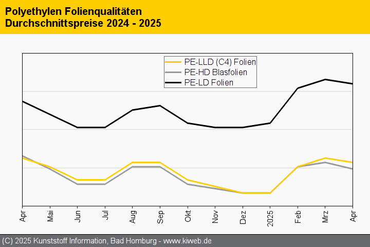Im Mai dürfte sich der Preisrückgang verschärfen: Denn die erneute Abwärtsbewegung des Ethylenkontrakts wird dafür sorgen, dass die Polymernotierungen spürbar nachgeben. Dies berichtet der Branchendienst Kunststoff Information (KI, Bad Homburg; ) im aktuellen Online-Report.