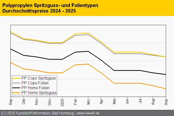 Vom anfänglichen Vorhaben der Produzenten, die Preise hochzuschrauben, blieb bis zur Monatsmitte nichts mehr übrig. Da die Bedarfssituation kaum Impulse aufwies, wurden zunehmend die Sonderdeals des Vormonats in die Verhandlungen für September übernommen. Erzeuger setzten die Mengen über den Preis. Somit kam es trotz des Rollovers beim Vorprodukt Propylen oft zu Anpassungen nach unten bis in den mittleren zweistelligen Bereich.