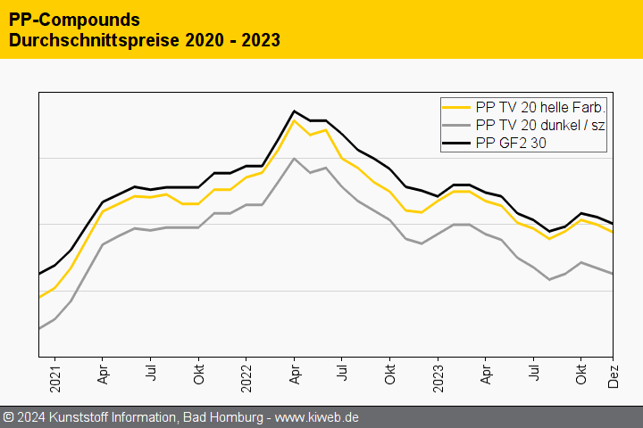 Die Weitergabe der Vergünstigung der Propylenreferenz von -30 EUR/t wurde zum Jahresende 2023 kaum noch ernsthaft diskutiert, sondern gleich umgesetzt. Preisgeschacher verbot sich angesichts extrem schwacher Nachfrage und angesichts des Verfalls der Spotnotierungen. Europäische Produktionsanlagen liefen nur mit deutlich reduziertem Output. Importe füllten das Angebot aber auf. Geordert wurde in den ersten beiden Dezemberwochen zumeist nur das Nötigste. Danach verabschiedete sich ein Verarbeiter nach dem anderen in die Weihnachtspause.