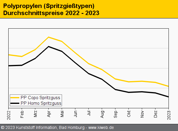 Die Preise für Polypropylen, die sich seit Mai 2022 auf Talfahrt befinden (mit Ausnahme einer kurzen Pause im November), haben im Januar 2023 weiter nachgegeben. Richtungsweisend dabei war der neuerliche Rückgang des C3-Referenzkontrakts, der zum Jahresauftakt um 95 EUR/t fiel. Allerdings gaben die Produzenten oftmals nicht den kompletten Umfang der C3-Kostenreduktion weiter und begründeten dies mit den nach wie vor hohen Energiepreisen. Einige Anbieter mussten sich auch deswegen mit geringeren Abschlägen begnügen, da sie schon im Dezember überproportional hohe Preisermäßigungen erhalten hatten. Die Nachfrage blieb auch nach dem Jahreswechsel verhalten. Lagerauffülleffekte verliehen dem Markt nur wenig zusätzlichen Schwung, der Bestandsaufbau fiel seitens der Verarbeiter geringer aus als sonst. Dies berichtet der Branchendienst Kunststoff Information (KI, Bad Homburg) im aktuellen Online-Report.